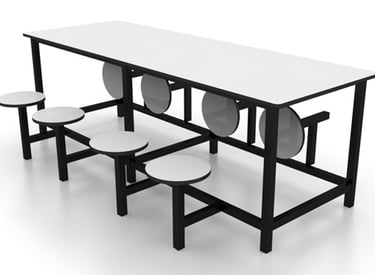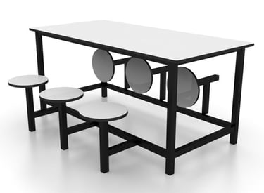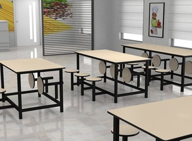 As mesas com bancos escamoteáveis são uma escolha inteligente para refeitórios empresariais,