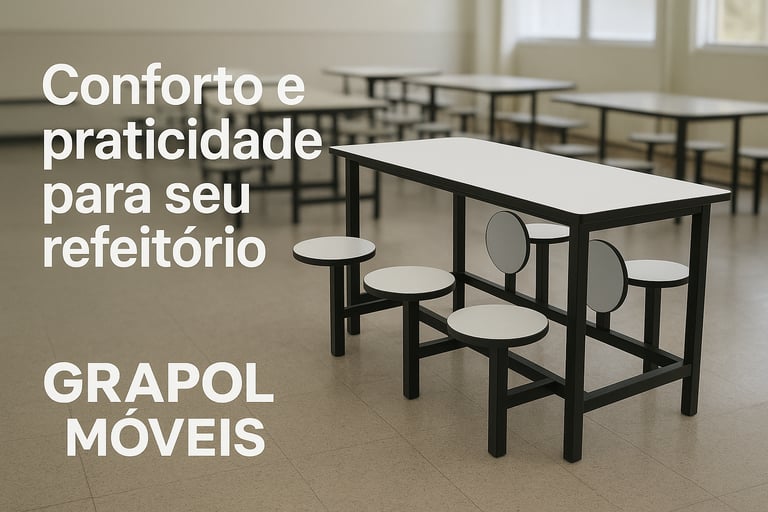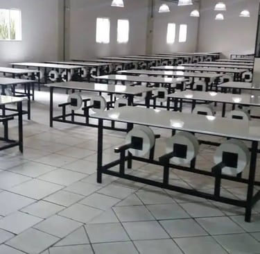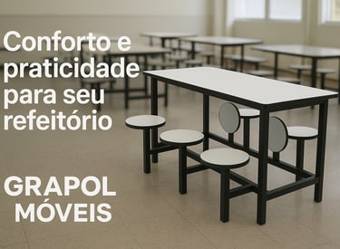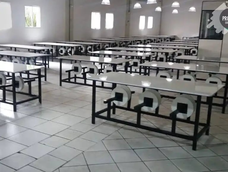 Essas mesas são projetadas para uso intenso, geralmente fabricadas com estruturas metálicas reforçadas e tampos de alta resistência à umidade e impactos, o que as torna ideais para ambientes coletivos.